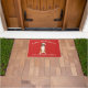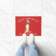 赤い背景にサンタハットを着たボクサー・ドッグを登場させた可愛らしいフェスティバル・ドormat。