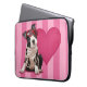 芸術家がMaryline Cazenave絵を描く大きいピンクのハートの粋なボストンテリアの子犬。