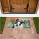 若い可愛いボストンテリアの女性の子犬は、白いマーキングと黒の花の庭で。ボストン・テリアはボストンの雄牛とも呼ばれ、アメリカの紳士とも呼ばれ、親フレンドリー友に優しく知性がある、犬の品種である。Kato Mendenが撮影した犬の目の犬の写真、この写真印刷ドアマットこんにちは愛犬家のための魅力的なギフトアイディアである。名前または文字でカスタマイズ。
