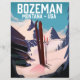 美しい風景の背景を持つ詳細で美しいヴィンテージスタイルにボズマン図解入りの、写真付きのモンタナスキーポスターロゴ。