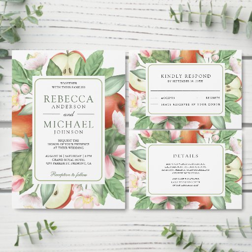 ボタニカルフローラレッドアップル結婚果樹園 招待状