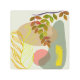 マゼンタ、グリーン、イエロー、ブラウンの色とフローラの要素を持つ植物性ボホデザイン。