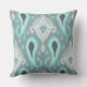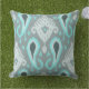 ボヘミアンアクアターコイズイカットトライバルアートパターン アウトドアクッション