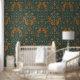 ボヘミアン猫の上品 – Moodyティール(緑がかった色)&オレンジ 壁紙