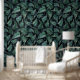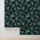 暗エレガントモダンい背景に緑のシダを描いた植物壁紙パターン