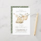 このカスタマイズ可能な招待状ブランチの招待状を使用して、イベントの家族と友人。ベビーのドレス、ベビー用ビブ、トートバッグ、ユーカリのアクセントと水色のクロースレインを特徴とする。この水の色のベビーブランチの招待をカスタマイズするには、詳細を追加する。このボホベビーブランチの招待状は、女の子の赤ん坊シャワーのための完璧である。