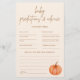 フェスティバルの魅力と心温まるおもしろいの楽しいブレンド任意の秋の赤ちゃんシャワーに最適。シックなボホの要素とカラフルカボチャのデザインで飾られたこのジェンダー中立ゲームは、男の赤ちゃんと赤ちゃん女の子シャワーの両方にシームレスにケータリング。オレンジとブルーのカボチャのモチーフを取り入れ、秋の気風を体現しながら、来客の予想やアドバイスを共有するためのクリエイティブの出口を提供する。小さなカボチャユニークや軽いカボチャの赤ちゃんシャワーアイディアを探している人に理想的な、このゲームはあなたのお祝いにパーソナライズされたtouchを追加し、すべての参加者のために思い出に残る。