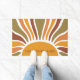 レトロはっきりしたなカスタムの家名ボホ黄金の日の出のドアマットと黄色のオレンジ色のテラコッタ、オリーブグリーンの太陽の光。目はっきりしたを引く。招待状は陽気で明はっきりしたるい玄関で。