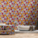 ボホシックお洒落オレンジレッドピンク花模様 壁紙