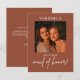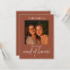 Boho Terracotta写真メイド・オブ・オーナー(花嫁付き添い人)提案カード。'メイド・オブ・オーナー(花嫁付き添い人)'という語は編集できない。横向き/横向き写真をアップロードする。コレクションに一致するアイテムがあるかどうかを確認する。