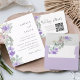 招待状このboho – ウェディングRSVPカードでスタイルに応答するインスパイアにお客様のゲストに応答するには、柔らかい紫色の色合いと緑豊かな緑のユーカリのアクセントに手の水色の花模様絵を描を含む。植物画エレガントは、庭園、素朴、またはボヘミアンのロマンスと自然美しいを捉え結婚ている。返信詳細で完全にカスタマイズ