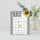 白黒バッファロー付きBoho日当たりの良い黄色の水色ひまわりフローラデザインは、赤ちゃんシャワー"BaByQ Bingo"カードデザインをチェックする。複合デザイン別休日ハートデザイン(権利留保)。