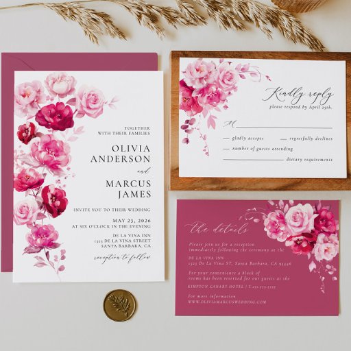 ボホマゼンタホットピンクアーチフローラエレガントな結婚式 招待状