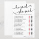 ミニマルな彼は彼女は推測する誰がゲームブライダルシャワーゲームは、あなたの友人や家族と思い出を作成するおもしろいの方法だと言った。あなたの美しいためにこのカードを結婚つかみ、思い出に残る瞬間を作成する。すべての色カスタマイズフォント、線、背景、および唇を東に向けてカスタマイズも可能。