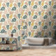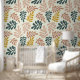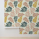 ボ自然ホフローラ葉のパターンの皮とスティック壁紙。白の上に緑、ビスク、マスタード。