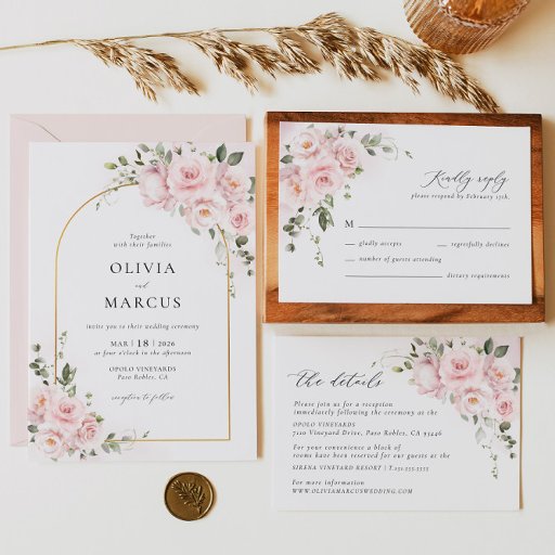 ボホ赤面ピンクローズフローラ金ゴールドアー結婚チ セーブザデート