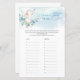 このシックなボホスタイルデザインの名前のチューンおもしろい – 男の子の赤ちゃんシャワーゲームは、新鮮なユーカリの緑のリースの上に水色の手の色彩の鮮やか可愛いベビー象の席と混ざった埃っぽい青い花を特徴とし、男の子のシャワーに適している。一致連絡するアイテムまたはカスタマイズの赤面バラベビー©