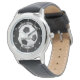 サッカーボール子供へ時計。カスタム、子供、名前、スチールブラックレザー少年が見る。お子様の名前でカスタマイズする。