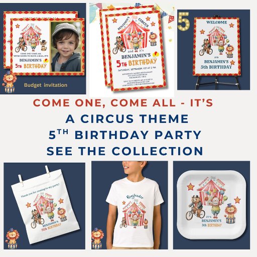 このフェスティバルとカラフル少年の第5回(または任意の年)の誕生日歓迎バナーは、おもしろいで満たされたサーカスのテーマを備えている – メインテント、ピエロ、サーカスの動物。一致するパーティー項目がコレクション内に見つかる。自分のイベントに適するようにパーソナライズするために多くの。デザインの質問は、単にチャットを送信し、私たちは助けるために喜ぶ。