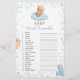 この愛らしいベビーの単語スクランブルシャワーゲームはあなたの詳細のためのスクリプトと文字で雲の上に浮かエレガントんでいる男の子テディモダンベアを特徴とする。背中の機能テディベアはバルーンを保持している。の「カスタマイズパーソナイクリックズ」による簡単。回答鍵: 1.おむつ、2.クレードル、3。ガラガラ4.ボトル, 5.おしゃぶり、6.妊娠7.式, 8.テディベア, 9.ハイチェア、10。ベビーカー11.ベビーモニター, 12.ガラガラ、13。ベビーパウダー, 14.モバイル, 15.胸ポンプ, 16.毛布、17。車の座席, 18.泣き叫び, 19.子供部屋, 20.おむつクリーム