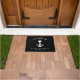 黒いスタイリッシュ背景にいかりの白いイラストレーションを備えたモダンあなたのボートのためのテーマのドーム。船の名前、船長や家族の名前や似たような名前、場所でパーソナライズする。