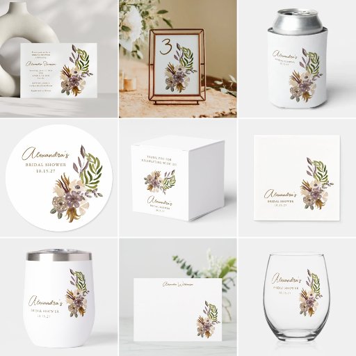 ボーホー ラスティック ダスティ パープル ネイチャー ボタニカル アーシー カスタム ブライダル シャワー ナプキン