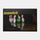 ボウリングのボールがピンを打ち倒す写真を特徴とするボーリングフォーマット。