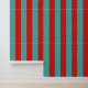 鮮やかはっきりしたなポストボックスの赤とマーメイドのティール(緑がかった色)を交互に配置した垂直なデザインパターンストライプで、ファッション、ホームデッキ、またはデジタル背景に最適なダイナミックで目を引くパターンを作成。