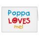 Poppaは私のTシャツ、カード、シール、ボディスーツのバッグを愛し、カラフルレッド、イエロー、ブルーの文字とハートデザインと多く。このポッパ大好き私のアパレルギフトティのアイテムはポッパスマイル!