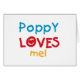 Poppy Loves私のTシャツ、カード、シール、ボディスーツのバッグ、そしてカラフル赤、黄色、青の文字とハートデザインと多くの。これらのポピー私のアパレルとギフトアイテムはポピースマイルを作る!