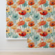 ポピーカラフルスのモダン花の柄の壁紙はコンテンポラリー、黄色、オレンジ、緑、青と赤のポピーの花を特徴とする。自宅、オフィス、パーティーの装飾に最適。Evco Studio www.zazzle.com/store/evcostudioによって作成