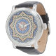 青、オレンジ、マルーン、青銅、ミント、黄色の色の美しく珍しいアズレジョのタイルのパターン。ポルトガルスペインの語訛りの男性用・女性用ウォッチ。