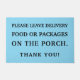 ポーチ離れのドアマットに食べ物や小包を届けて下さい