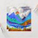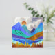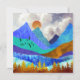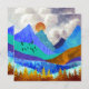 質感に白い曇り空と丘を持つカラフル山の風景転がと、青やティール(緑がかった色)、シアン、金ゴールド、オレンジなどの色とはっきりしたを描いた豪華なデザイン。