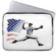 マウンドで – 野球投手と米国国旗 ラップトップスリーブ