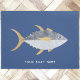 おもしろいの青い背景に生意気なスマイルを航海の持つマグロ魚。オリジナルアートby Nic Squirrell.ボートの名前または文字をカスタマイズする。