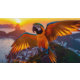 夕日のリオデジャネイロの上に可愛いオウムが並ぶ美しいマカオの時計。鳥の幸せが君の人生に広がってほしい。世界を彩ろう!!