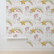 魔法のユニコーンと美しいパステル色の虹と星は、この壁紙のおもしろい子供へベッドルームと子供部屋を作る!カスタマイズ機能を使用した名前の追加
