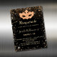 仮装エレガントの為に、甘い16、16歳の誕生日。黒スタイリッシュい背景。フェイク飾金ゴールドグリッターの塵と仮装マスクを持つ名前、年齢、およびパーティー詳細をカスタマイズして追加する。名前は手書文字のスタイルスクリプト