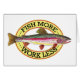 FISH MORE - WORK LESS - Rainbow Trout.このユーモアのあるデザインは、ブルックマス、ブラウンマス、チャー、ブルーギル、バスなどの他の魚でも利用できる。