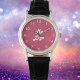 マゼンタピンクのホワイトビジネスロゴ 腕時計