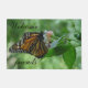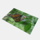 あなたの通路に服を着せる歓迎された友人のドア・マット。 なびく翼を持つかわいらしいマダラチョウおよび白い点が付いているオレンジ黒のストライブ柄。 かわいらしい蝶はぼやけられた緑の背景の緑の葉そしてつぼみを搭載するピンクの白い花の私のぶら下がったなバスケットに立寄りました。 TamiraZDesigns著元の写真撮影。 元の項目のための私の店を訪問して下さい: www.zazzle.com/tamirazdesigns*