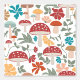 マッシュルームとフローラミッドセンチュリーモダンパターン 壁紙