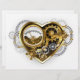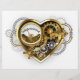 機械的で体積のあるスチームパンクスタイルの心臓に圧力計が付いており、鋼と金の歯車が白い背景に映えている。