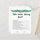 クリスマス「誰がママを知っ最高のている」赤ちゃんシャワーゲームは、イベントに休日の応援をもたらすクラシックシャワーゲームのフェスティバルのねじれである。クリスマスをテーマにしたアクセントの松の枝と繊細な赤と緑のtouchで飾られたこのゲームカードは、おもしろいの質問と一緒にお母さんの知識をテストする。冬の赤ん坊シャワーに理想的な、それはお祝いに季節のtouchを追加楽しむし、彼らが賞品を競うだけでなく、期待している母親についてより学も魅力的な活動を作り出す。居心地の良いフェスティバルのベビーシャワーの雰囲気に最適!