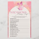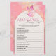 ママのゲームを知っている開花の女の子のベビーでゲストの知識をテストす最高のる!柔らかいパステルピンクの背景と繊細なピンクの蝶がデザインを横切って舞う。このおもしろいと魅力的なゲームは、誰がママの存在を知っているか見るのに最適な方法で最高のす。それは美しく一貫性よくはしゃぐのあるフローラテーマの間、あなたの赤ちゃんシャワーに個人と保touchを追加する。一致す忘れる項目を調べなさい。