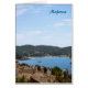 マヨルカ、スペインの町の青空、海、屋根のビュー。絵画作用