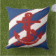 ボートまたはビーチハウス赤と青のストライプデザインフロントにいかり。シックエレガントな赤いデザイン、豪華なボートの装飾やビーチハウスに最適。自分の名前またはボート名を変更する。