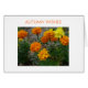 鮮やかな色のマリーゴールドの自然の花の写真、および秋の挨拶はこのカードを飾ります