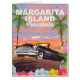 ベネズエラ、マルガリータ島ヴィンテージスタイル旅行のポスター美しい古いクラシック車のビーチ。